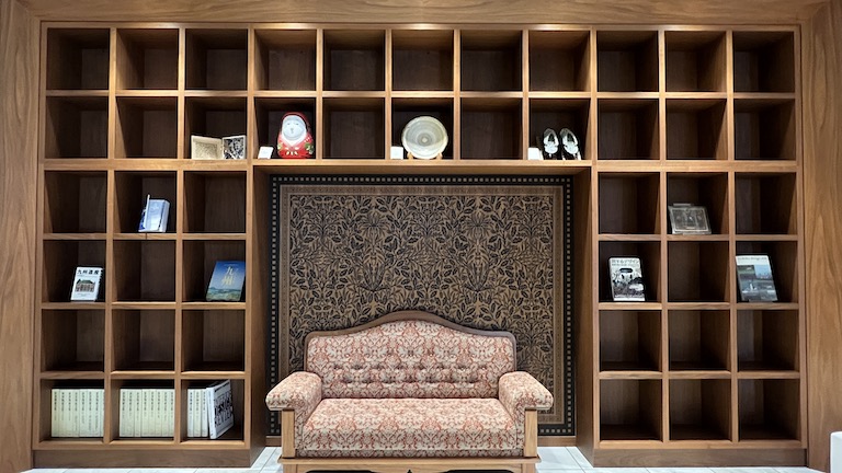 AMU PLAZAの入ったビルの8階から繋がっています。床や壁などは白くてモダンな雰囲気なのですが、ロビー周りはレトロな雰囲気になっています。